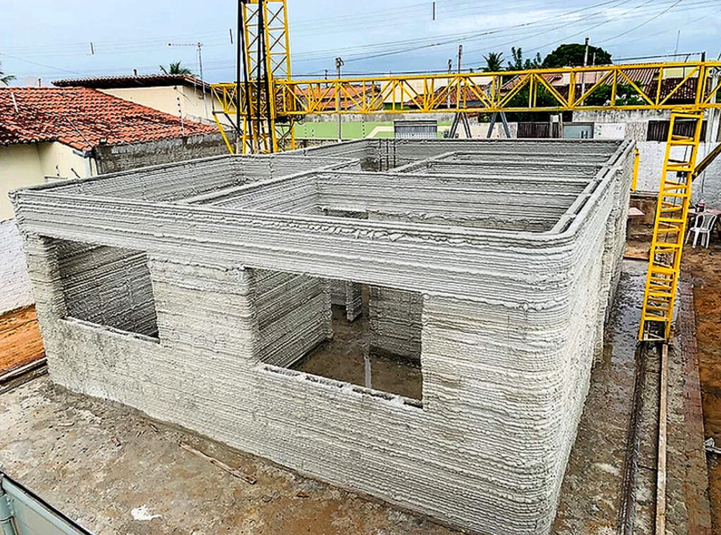 📍 Em Caxias do Sul (RS), a empresa 3D Printek usou uma impressora 3D grande para construir uma casa de concreto impressa em 3D, mostrando que o setor já está funcionando aqui.